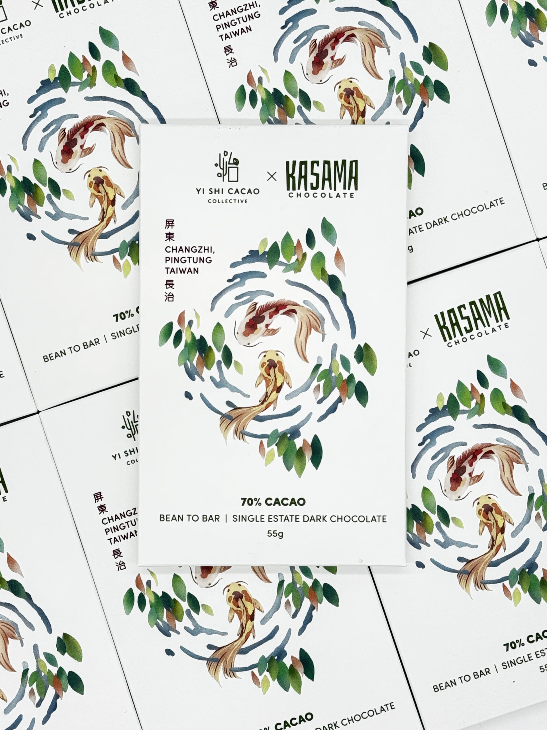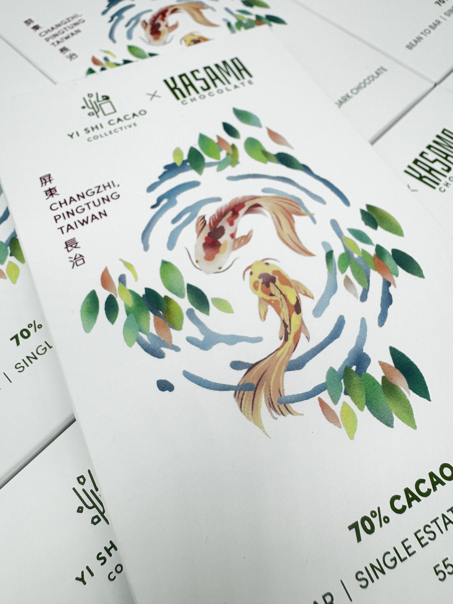 This chocolate bar is crafted in collaboration with Olivia Wu from Yishi Cacao. It features cacao beans sourced from a single estate: Meya Farm in Pingtung, Taiwan.